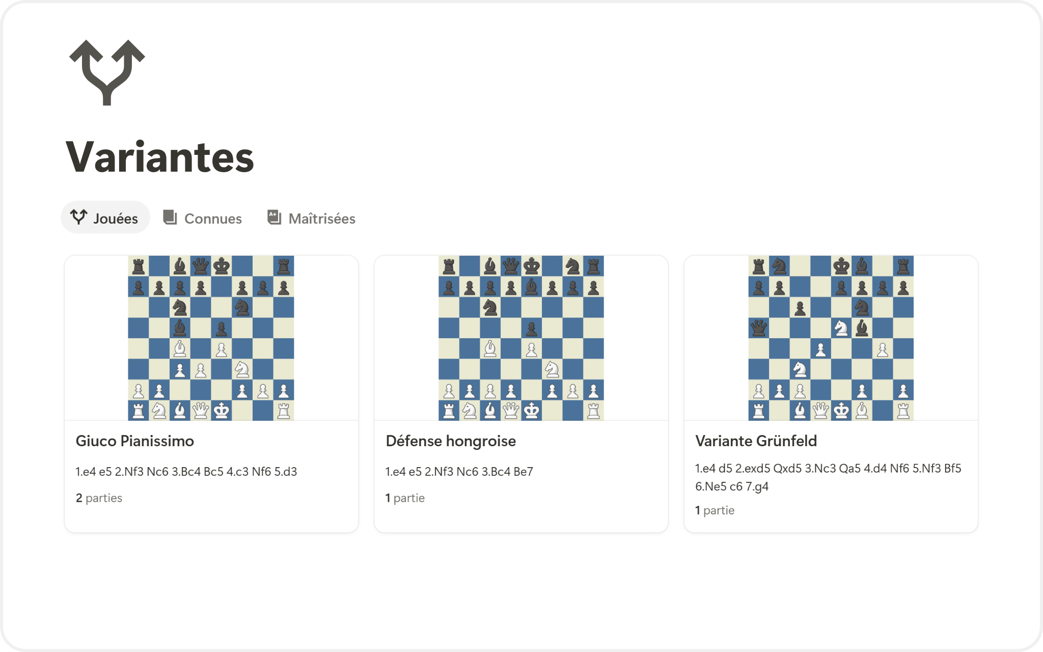 Chess Tracker vous aide à améliorer votre jeu d'échecs, suivre votre progression et assurer une gestion efficace de votre apprentissage.