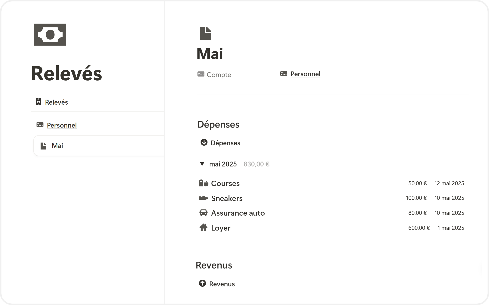Générez automatiquement des relevés de compte mensuels pour archiver vos finances.