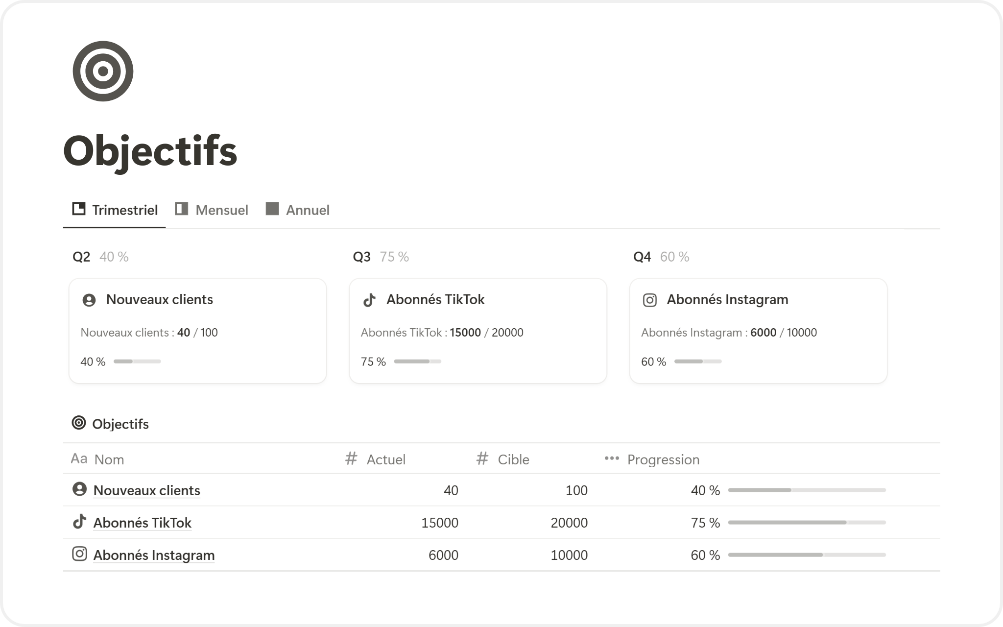 Si vous appréciez mes modèles Notion, cliquez ici pour partager votre avis. Cela prend 1 minute et m'aide à améliorer les futurs modèles.