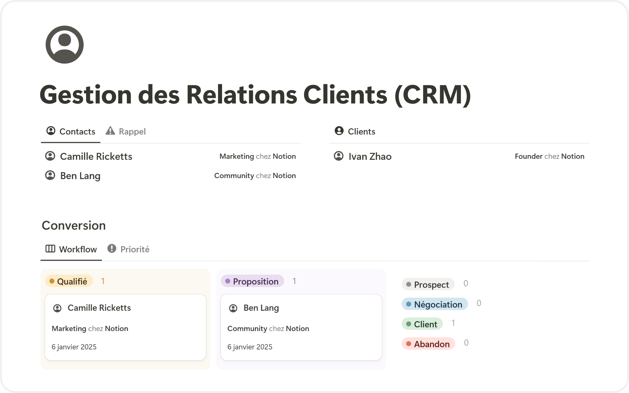 Oui, tous les modèles comportent des aides pour vous aider à les utiliser. Cliquez ici pour créer votre compte Notion.