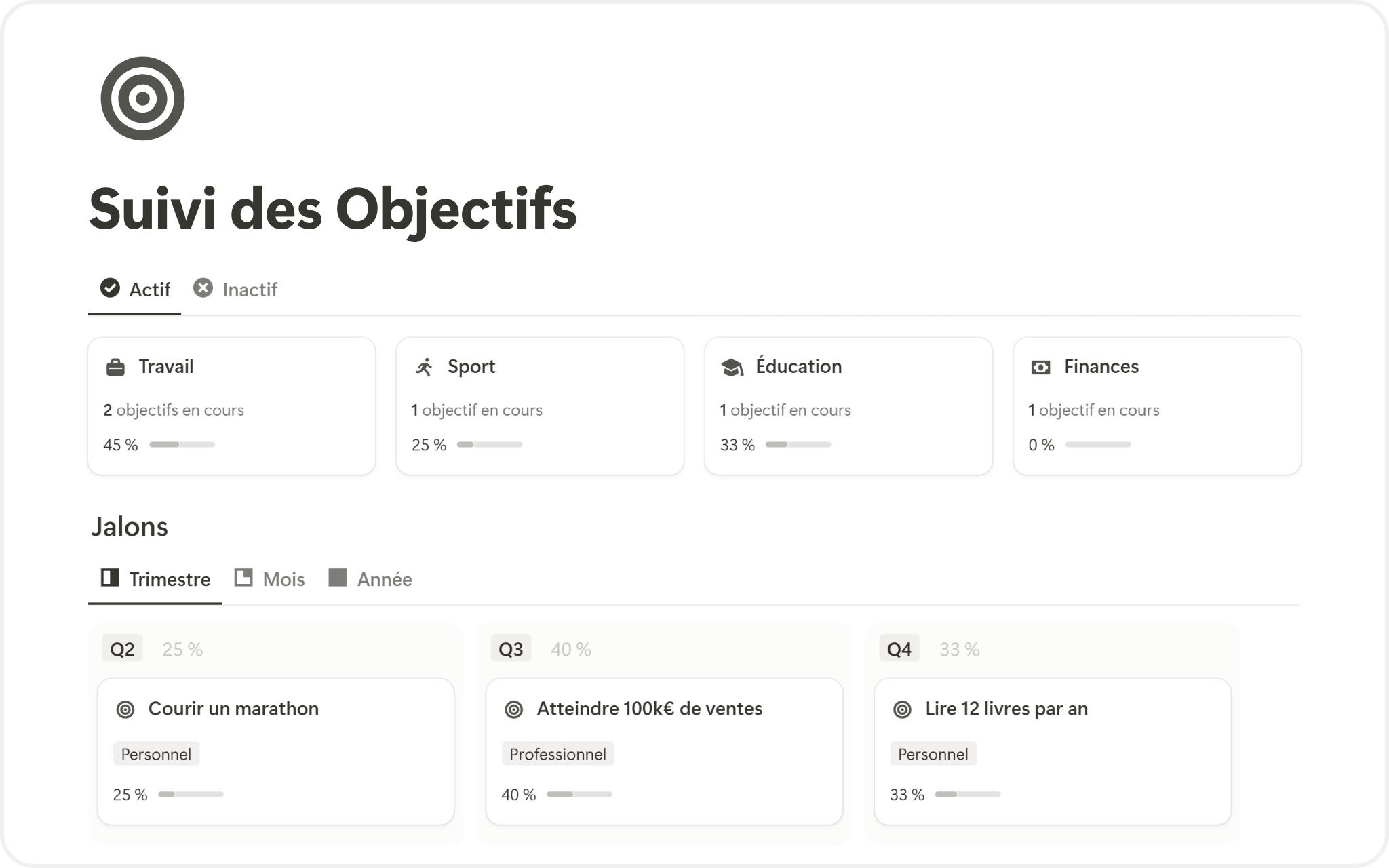 Suivez votre progression vers l'accomplissement de vos objectifs.