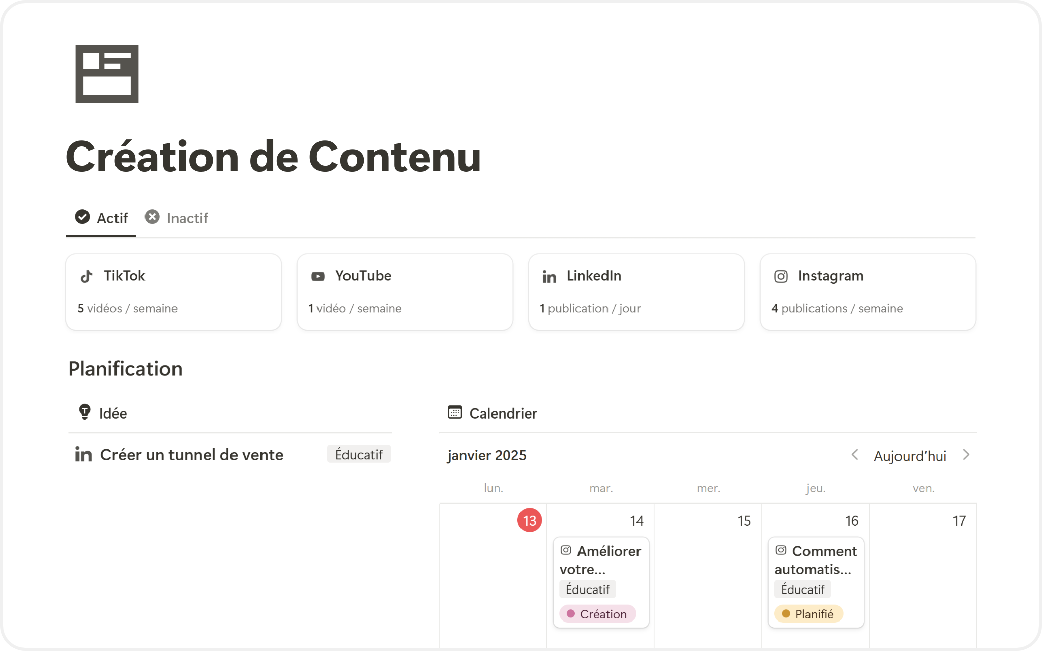 Gérez votre calendrier de contenu sur vos différents réseaux sociaux.