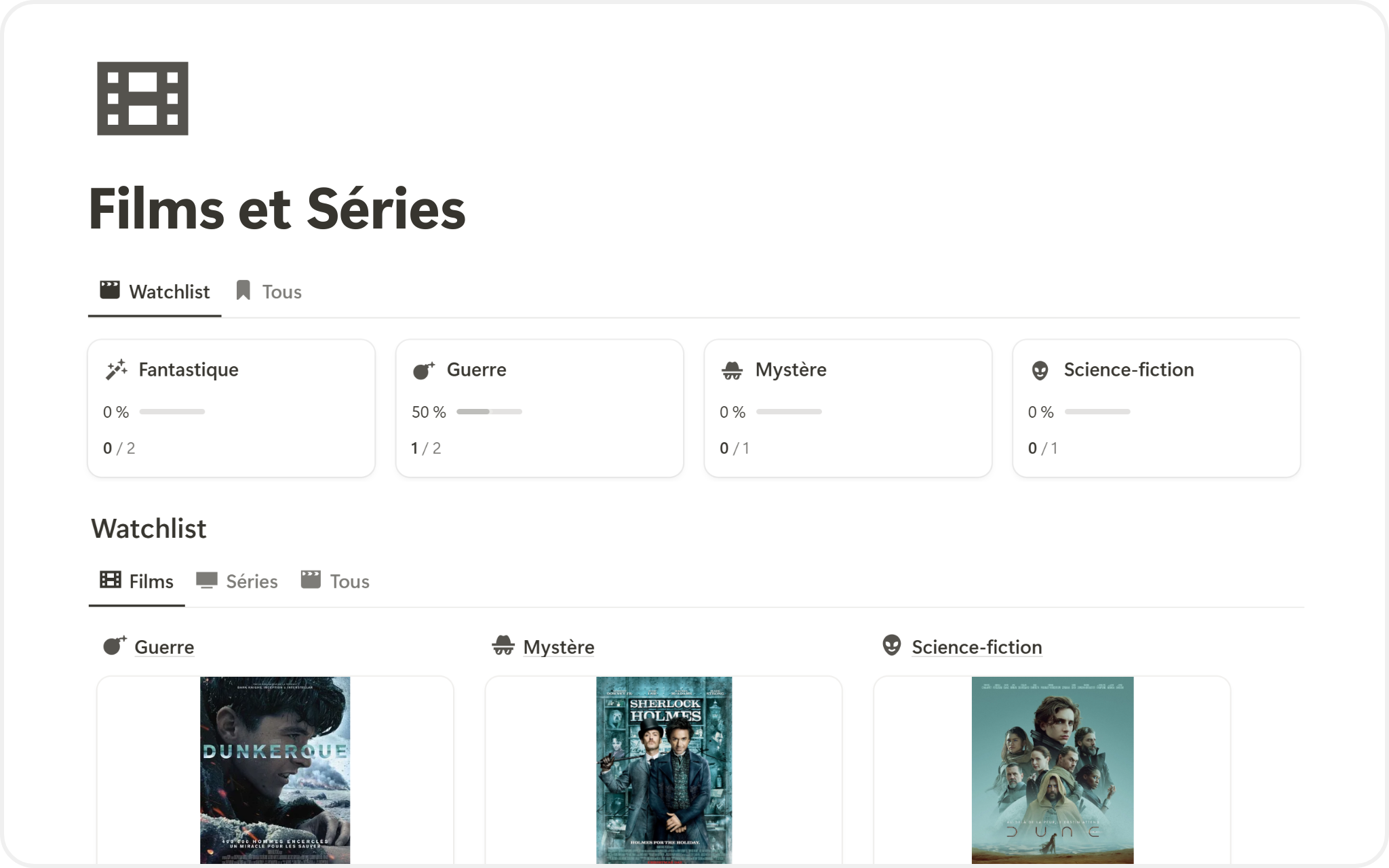 Suivez vos films et séries en cours et gardez une trace de vos coups de cœur.