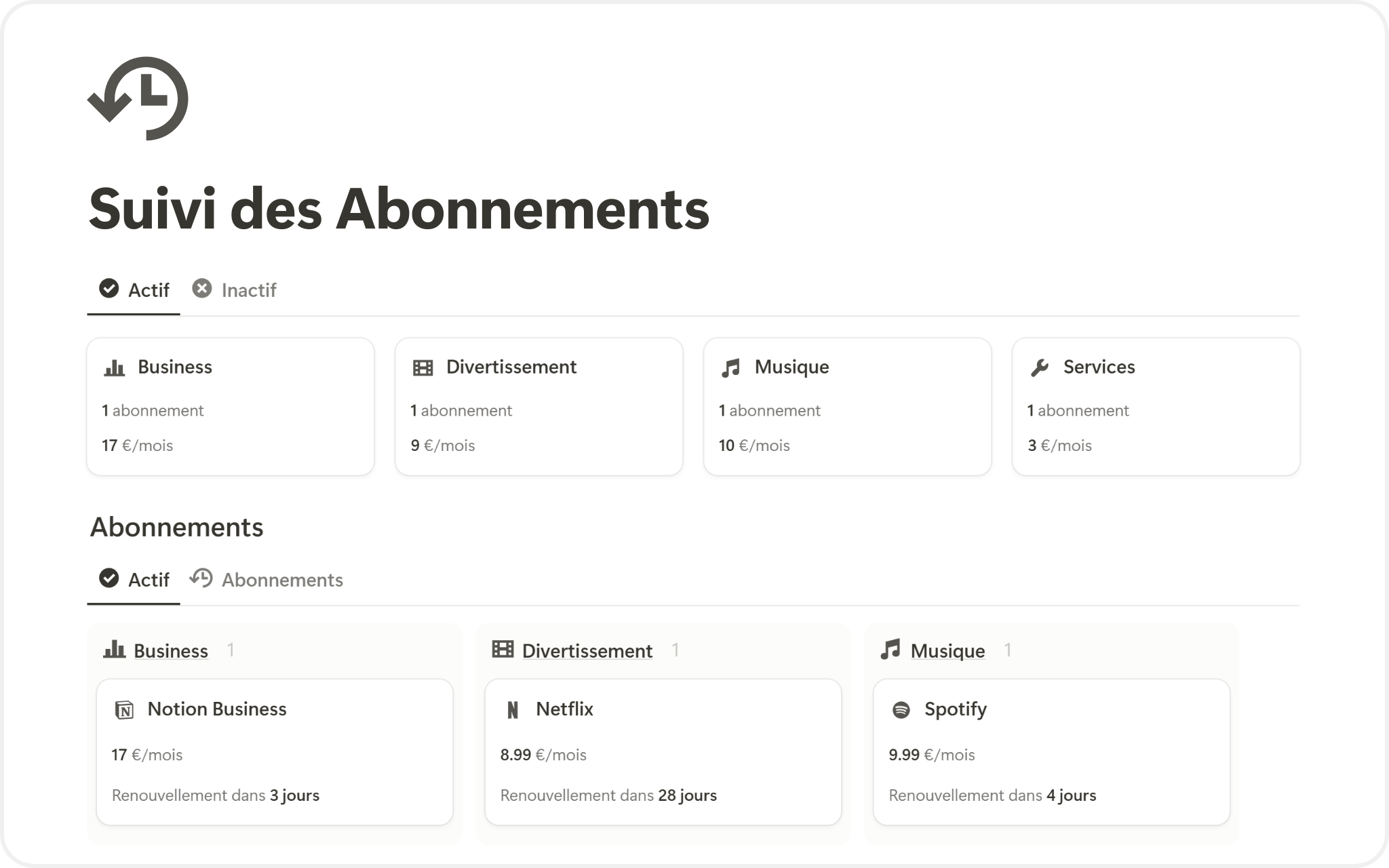 Enregistrez tous vos abonnements pour éviter les dépenses surprises.