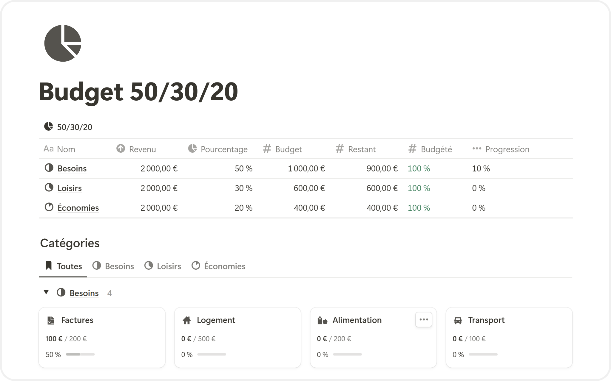 Répartissez vos revenus entre besoins, loisirs et économies.
