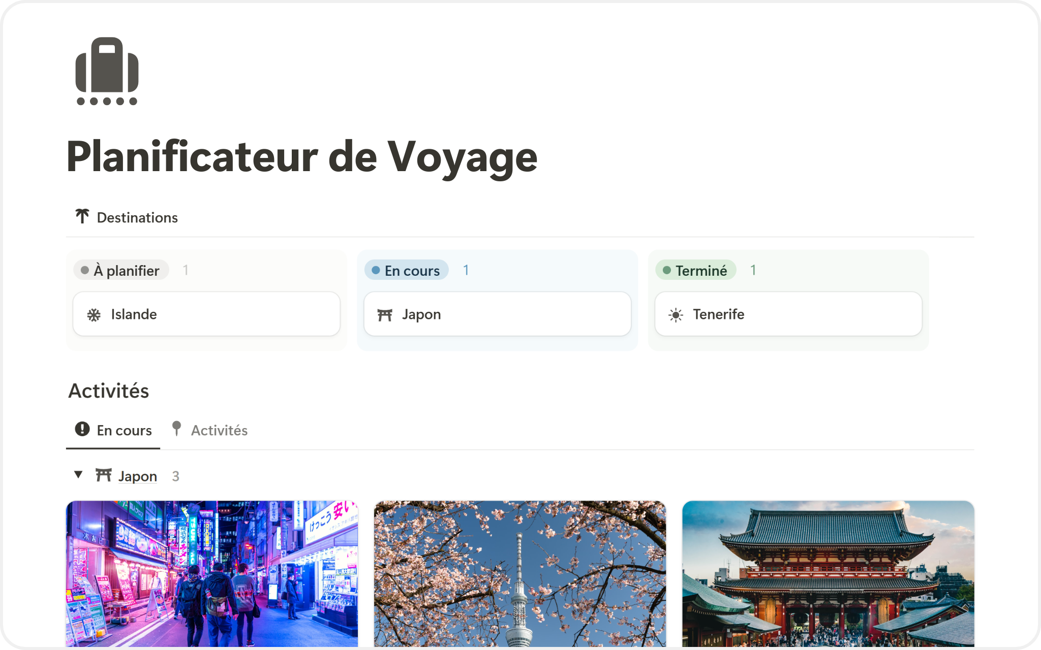 Organisez facilement vos destinations de voyage, itinéraires et réservations.