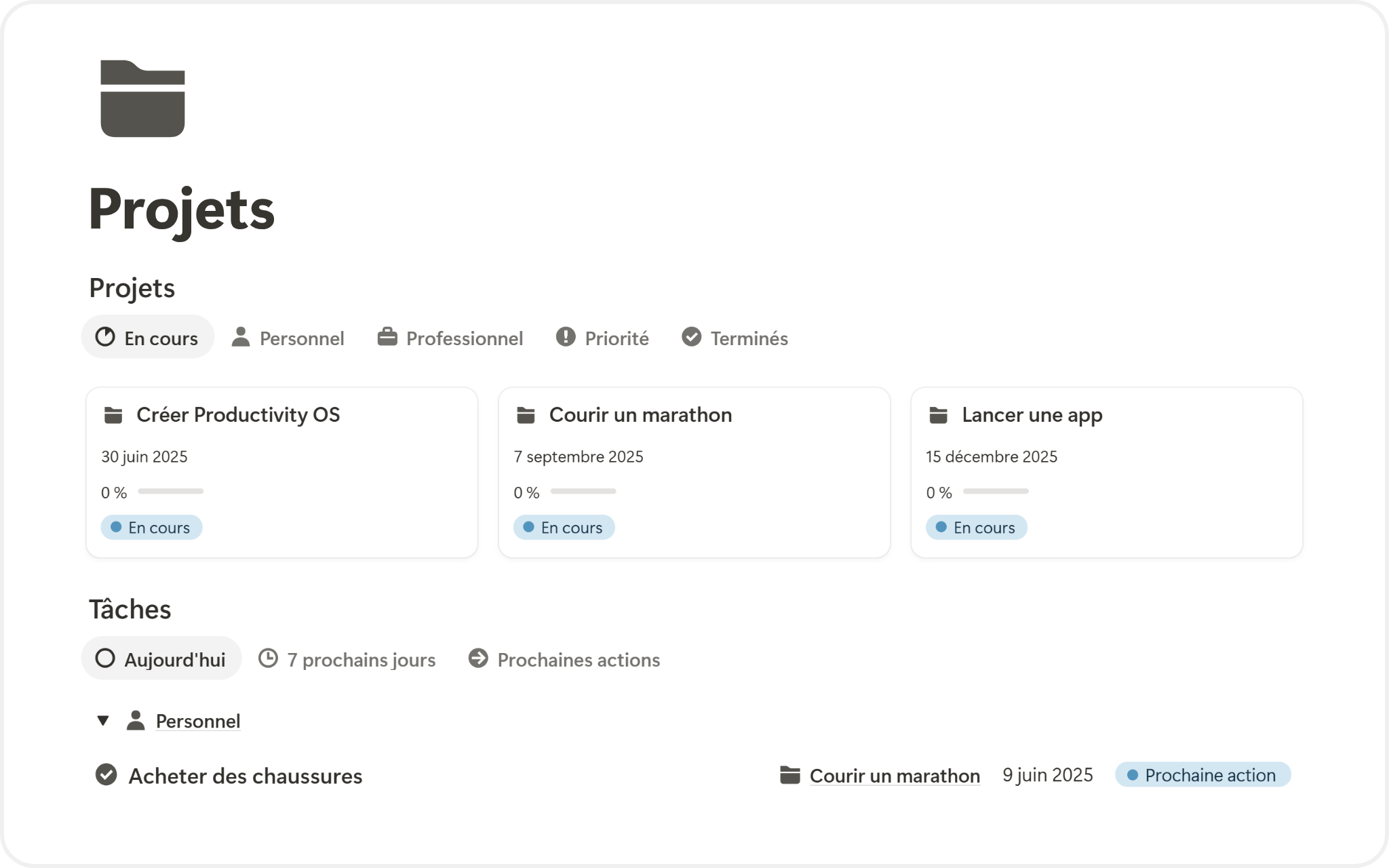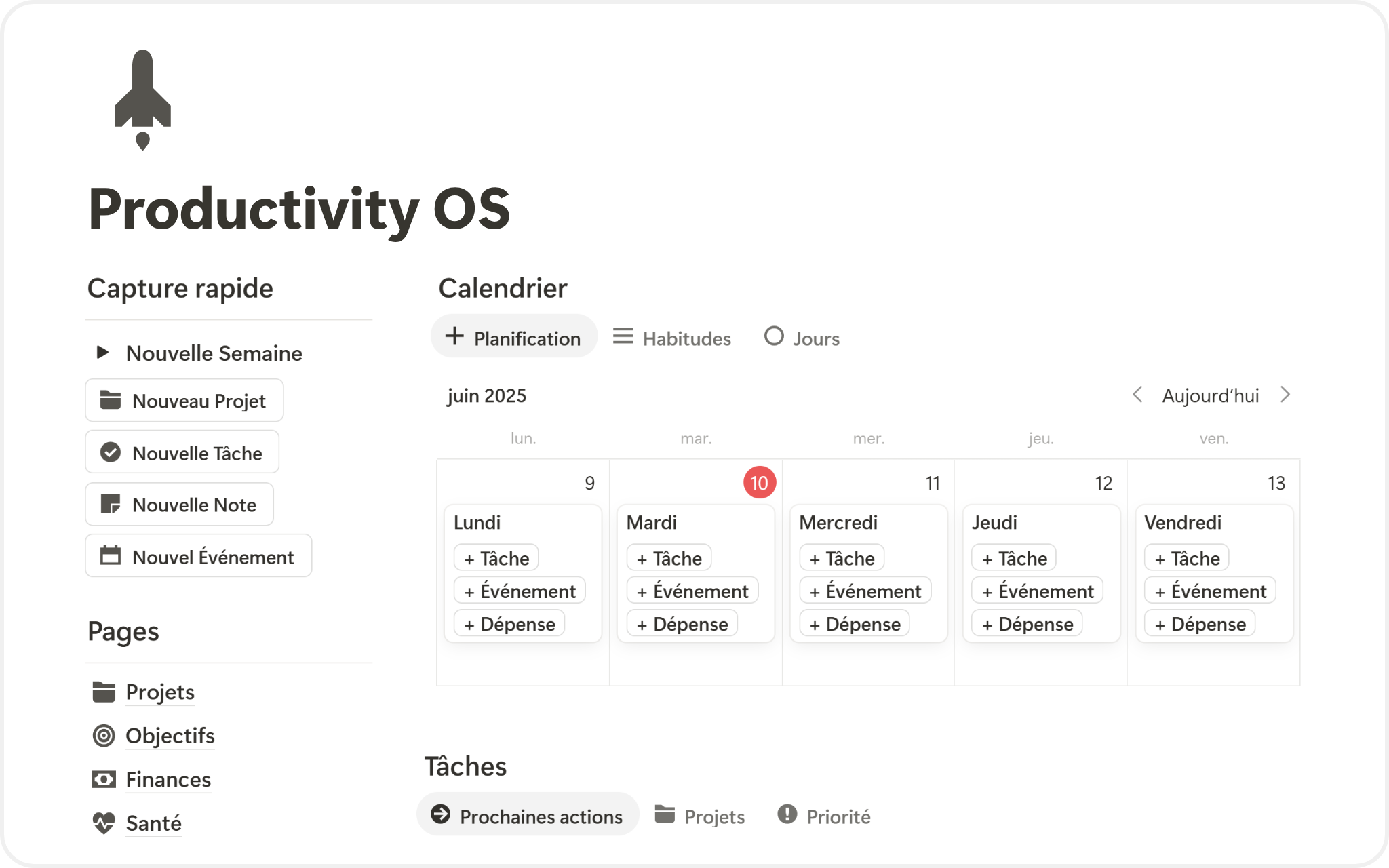 Productivity OS est la solution pour une vie organisée, offrant des fonctionnalités complètes pour le suivi des tâches, des finances et de la santé. Exploitez au maximum chaque journée grâce à une planification optimale.