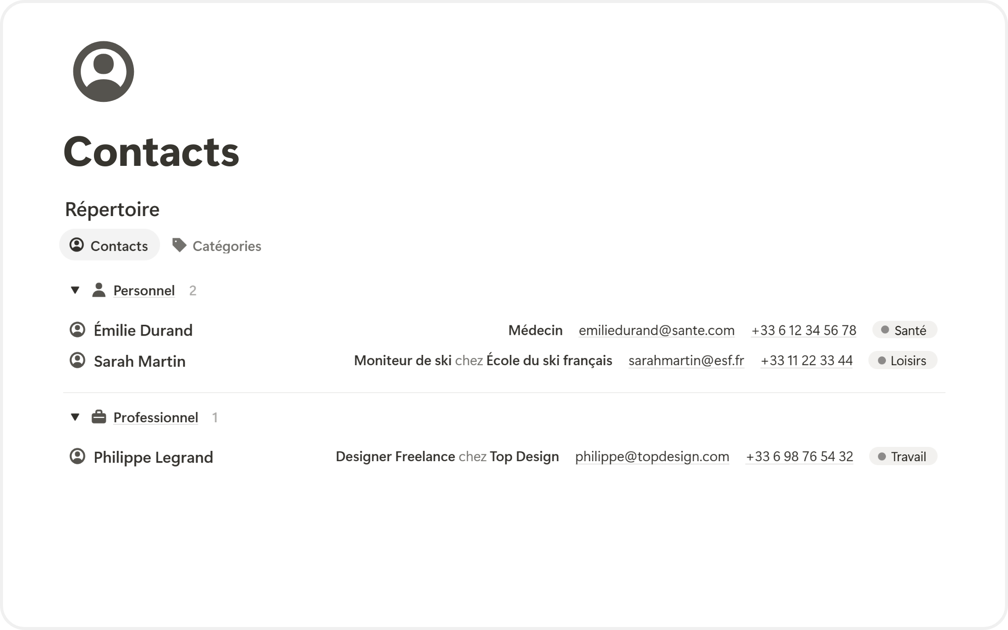 Paramétrez votre répertoire de contacts personnels et professionnels.